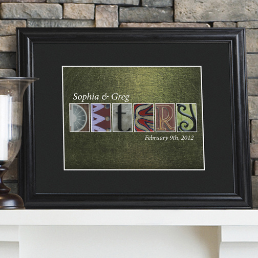 DETAILS: The Architectural Elements Family Name Print comes framed in a custom black, beveled wood frame with 3" mat and acrylic front. These works of art are a great way to showcase your family name, as well as just about any other noun, verb, adjective, or adverb you desire. You name it!