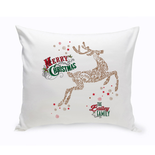 DETAILS: Personalized Holiday Throw Pillows with Christmas designs for the whole family to love! Each pillow cover is personalized and pressed to perfection. Zip-off cotton fabric cover makes it perfect for easy cleaning. Machine wash cold to avoid shrinkage.